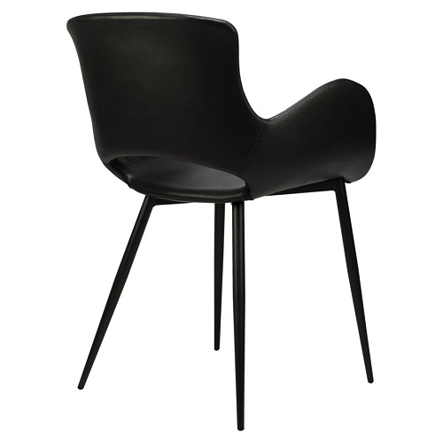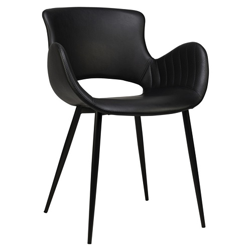 Door de opening in de rug krijgt stoel Kensi een luchtig design, wat ideaal is om ruimtes groter te laten ogen. De stoel is gestoffeerd met een zwarte PU-lederen bekleding in 2 verschillende toplagen, waarvan de armleuning voorzien is van een doorgestikt detail.
