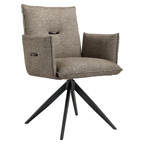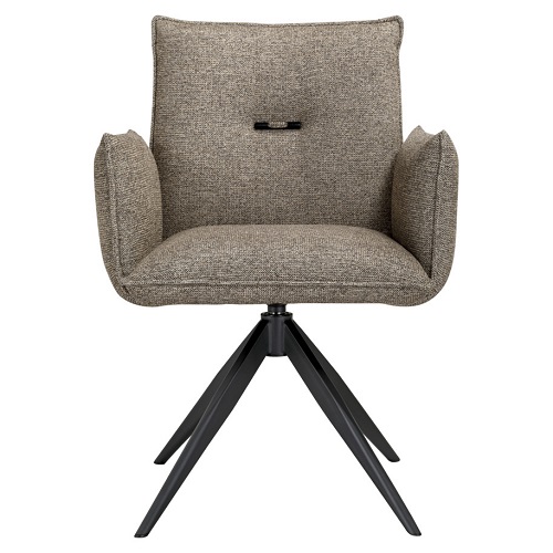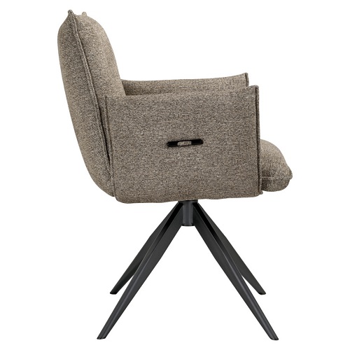 Een 360 graden draaifunctie met automatische terugdraaifunctie is wat de Peggy Armstoel Bruin zeer gebruiksvriendelijk maakt. De houten knopen op de stoffen bekleding zijn de fijne details die voor finesse zorgen op de Peggy Armstoel. Het zwart gepoedercoate metalen onderstel geeft de armstoel een krachtige uitstraling. Armstoel Peggy is ook verkrijgbaar in het antraciet en in het naturel.
