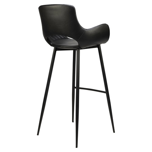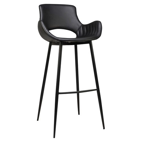 Door de opening in de rug krijgt barkruk Kensi een luchtig design, wat ideaal is om ruimtes groter te laten ogen. De barkruk is gestoffeerd met een zwarte PU-lederen bekleding in 2 verschillende toplagen, waarvan de armleuning voorzien is van een doorgestikt detail.