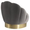 De Blax Fauteuil is een trendy en comfortabele loungestoel. Met dit model fauteuil creëer je op eenvoudige wijze een elegante sfeer in de ruimte. Dit komt door de zachte velours stoffering en de unieke schelpvorm van de rugleuning. Het metalen frame in de gouden kleur maakt het plaatje af. De Blax Fauteuil is dan ook een echt eyecatcher! De stoel heeft een mooie luxe uitstraling en past bijvoorbeeld ook heel goed in een juwelier.