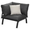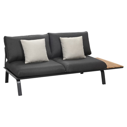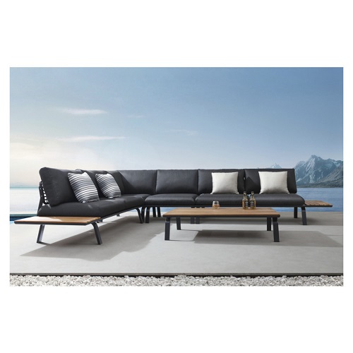 Deze stijlvolle hoeklounge bestaat uit een linker, – rechter, – midden en hoekbankelement en een stevige koffietafel. In het ontwerp van deze set zorgt gepoedercoat zwart aluminium voor een stabiele basis. Door deze poedercoating is het frame krasvast en onderhoudsarm. De rugleuning van de Punto Hoeklounge is bespannen met rope vlechtwerk. Voor zowel de zijkanten van de lounge als voor het tafelblad is gekozen voor hoogwaardig teakhout. De kussens zijn bekleed met zwart Olefin. Deze stoffering is UV-bestendig en vuilafstotend. Hierdoor is de set perfect voor professioneel buitengebruik!