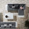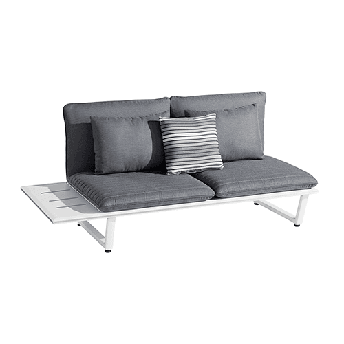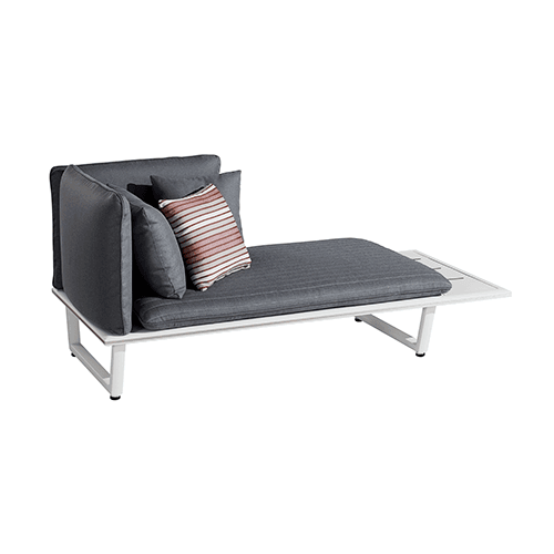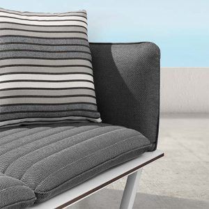Laat gasten genieten van de zon op de Sophia hoeklounge. De loungeset heeft een gezellige en speelse uitstraling en is voorzien van een stevig wit aluminium frame en grote, stoere grijze kussens om heerlijk in neer te ploffen. De kussens zijn gemaakt van Olefin. Olefin is een zeer sterk materiaal en staat bekend om zijn comfort. Vuil en UV-straling hebben geen invloed op de kwaliteit en daarnaast zijn de kussens slijtvast en voelen heerlijk zacht aan.