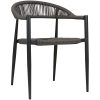 De Jonah terrasstoel is voorzien van een stevig antraciet aluminium frame en is bespannen met UV bestendig draadwerk van touw (rope wicker), wat zorgt voor een moderne uitstraling.