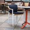 De Jonah terrasstoel is voorzien van een stevig antraciet aluminium frame en is bespannen met UV bestendig draadwerk van touw (rope wicker), wat zorgt voor een moderne uitstraling.