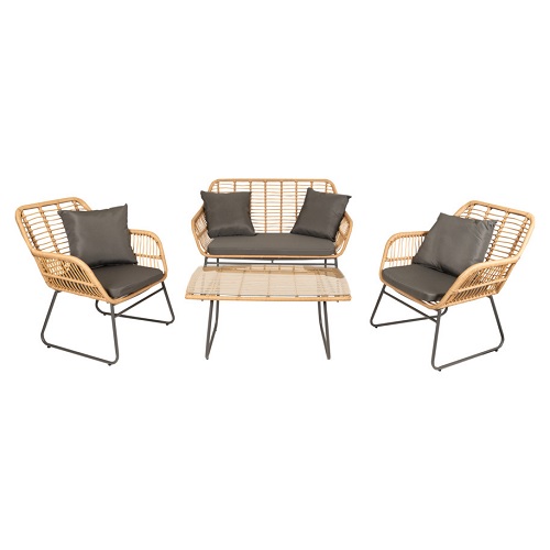 De Java Loungeset heeft een bohemian en trendy uitstraling door het vlechtwerk met rotanlook. Het luchtige design zorgt in combinatie met de drie bijgeleverde kussens voor ultiem zitcomfort! Deze vierdelige loungeset is van horecakwaliteit en gaat dan ook jaren mee! Enkel de koffietafel wordt ongemonteerd geleverd.