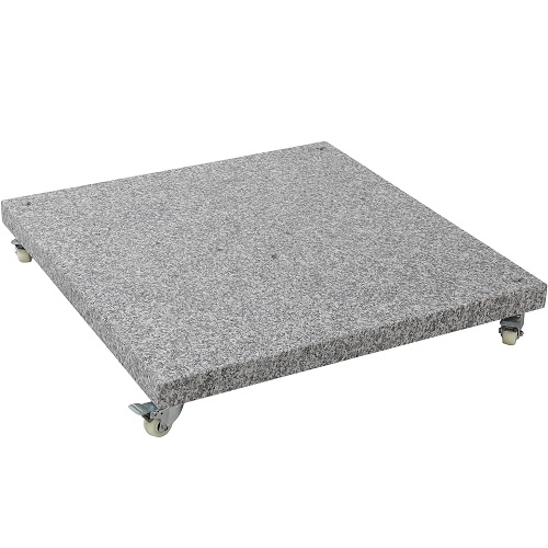Deze mobiele parasolvoet is geschikt voor de Karin, Liva en Eifel parasol. De vierkante parasolvoet gemaakt van graniet heeft 4 wielen. Deze 4 wielen hebben een rem systeem waardoor deze gemakkelijk vast te zetten zijn zodat de voet niet verschuift.