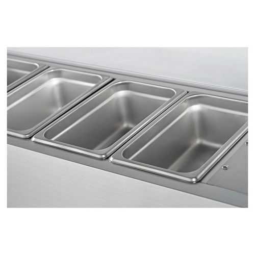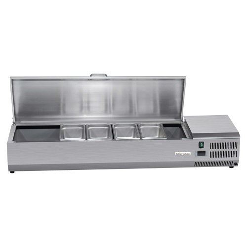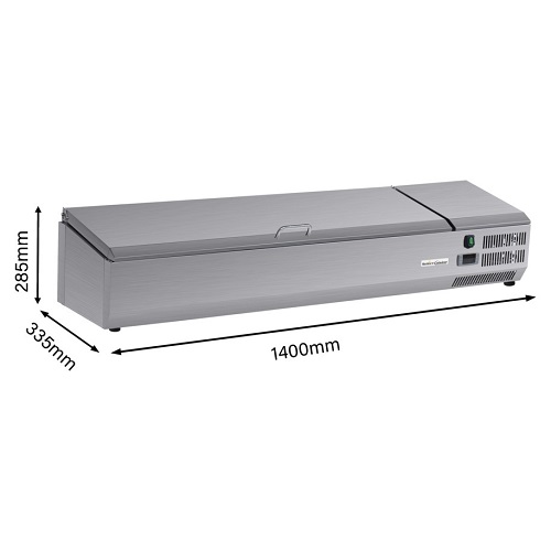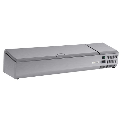 De gekoelde opzetvitrine VRX1400/330 van Select Cuisine heeft een inhoud van 40 liter. Dit model is gemaakt van roestvrij staal wat ook eenvoudig te reinigen is. De opzetvitrine heeft een temperatuurbereik van 2°C tot 8°C en is 1,4 meter breed. In de opzetvitrine passen 6 GN 1/4 bakken. Let op, dit model wordt geleverd zonder gastronorm bakken.