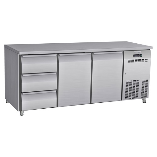 De koelwerkbank CC3140 van Select Cuisine heeft 1 deur en 4 lades met een inhoud van 418 liter. Deze mooie koelwerkbank heeft een temperatuurbereik van 0°C tot 8°C en is voorzien van een slot. Dit model heeft verstelbare voetjes, zodat de koelwerkbank op de gewenste werkhoogte gezet kan worden. De voetjes kunnen versteld worden naar een minimale hoogte van 83,7 centimeter tot een maximale hoogte van 86 centimeter. Er wordt een gratis set wieltjes bij geleverd waarmee de werkhoogte uitkomt op een hoogte van 85 centimeter. In de koelwerkbank zit 1 rooster, welke verstelbaar is.