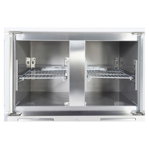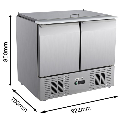 De saladette S900 van Select Cuisine heeft 2 deuren en een inhoud van 215 liter. Deze mooie saladette heeft een temperatuurbereik van 2°C tot 8°C en is voorzien van een slot. Dit model is gemaakt van luxe roestvrij staal wat ook eenvoudig te reinigen is. In de saladette zitten 2 roosters, welke verstelbaar zijn.