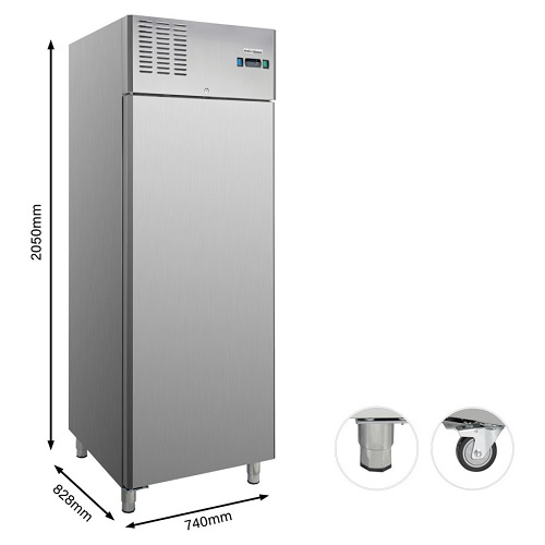 De vrieskast CN700A van Select Cuisine heeft een inhoud van 600 liter. Deze mooie vrieskast heeft een temperatuurbereik van -22°C tot -18°C, beschikt over led-verlichting en schakelt automatisch uit bij het openen van de deur. Daarnaast is dit model voorzien van een slot. In de vrieskast zitten 4 roosters, welke verstelbaar zijn.