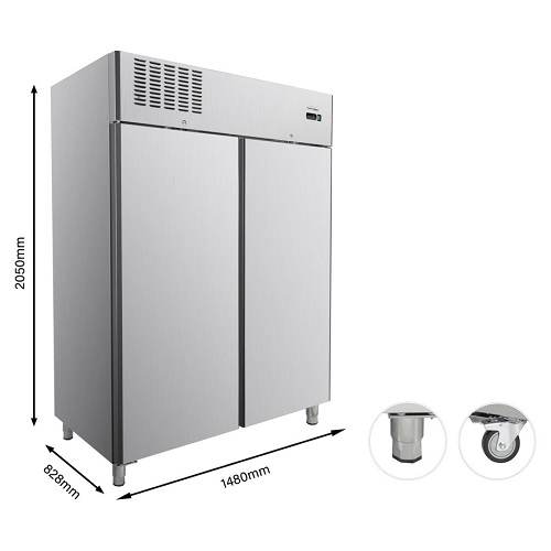 De vrieskast CN1400B van Select Cuisine heeft 2 deuren en een inhoud van 1375 liter. Deze mooie vrieskast heeft een temperatuurbereik van -22°C tot -18°C, beschikt over led-verlichting en schakelt automatisch uit bij het openen van de deur. Daarnaast is dit model voorzien van een slot. In de vrieskast zitten 6 roosters, welke verstelbaar zijn.