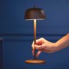De Circe tafellamp is een oplaadbare tafellamp op batterijen. Bovenop zit een knop waarmee je de lamp kunt inschakelen, de lichtintensiteit kunt aanpassen en de kleurtemperatuur van het licht kunt kiezen (dynamisch wit). De lamp is geschikt voor binnen en buiten, de gouden en koperen variant zijn voor buitengebruik enkel geschikt onder een overkapping. De Circe tafellamp wordt geleverd inclusief oplader en is verkrijgbaar in de kleuren bruin, shiny copper en shiny goud.