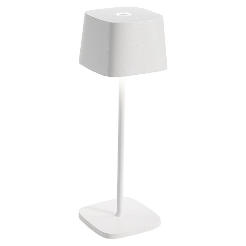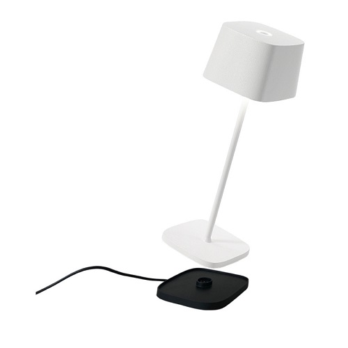 De Ofelia Tafellamp van het merk Zafferano is een stijlvolle, draadloze lamp die wordt opgeladen via een oplaad basis. De lamp is voorzien van een eenvoudig te bedienen dimmer, die via een aanraking aan de bovenkant werkt. Dankzij de geheugenfunctie worden de dim instellingen automatisch opgeslagen. De witte Ofelia Tafellamp is zowel geschikt voor gebruik binnen als buiten, wat de lamp erg veelzijdig maakt. Ze wordt geleverd met een oplader, en er is ook een oplaadstation beschikbaar voor maximaal 6 lampen. Na 6 uur opladen kan de lamp tot 8 uur branden.