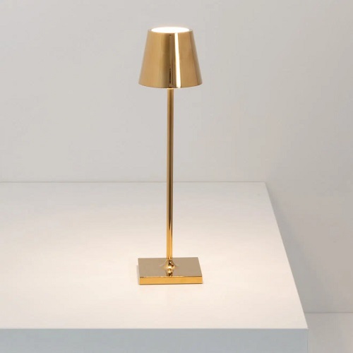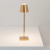 De Poldina Tafellamp is een elegante lamp van het merk Zafferano. Deze lamp is draadloos: hij kan makkelijk worden opgeladen door middel van een oplaadbasis. De Poldina Tafellamp is uitgerust met een dimmer touch control. Deze is eenvoudig bedienbaar via een aanraking op de bovenkant van de lamp. De Poldina Tafellamp in het goud is zowel binnen als buiten te gebruiken. Multifunctioneel dus! Deze lamp wordt geleverd inclusief oplader, daarnaast is er de mogelijkheid een oplaadstation voor 12 stuks te verkrijgen. De lamp dient 6 uur opgeladen te worden en kan hiermee 8 uur branden.