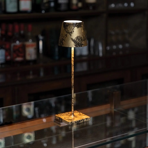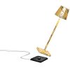 Poldina Micro tafellamp is een draagbare en oplaadbare tafellamp die werkt op batterijen. De lamp is uitgerust met een dimmer op aanraak bediening en geheugen functie die de lichtintensiteit aanpast en in het geheugen opslaat. De Poldina Micro is niet uitgerust met de dimmergeheugenfunctie. De Micro uitvoering heeft een eigen oplaadstation nodig. Maak de set compleet met de Poldina XL vloerlamp. De Poldina Mirco lamp is voor binnen en buiten gebruik en is verkrijgbaar de kleuren: antraciet, wit, bruin, goud glossy, crackle goud/zwart, crackle goud/blauw en crackle goud/rood. De gouden varianten zijn voor buitengebruik enkel geschikt onder een overkapping.