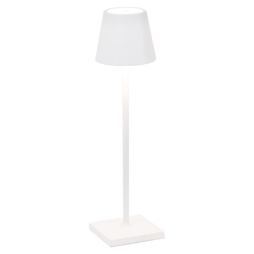 De Poldina Tafellamp is een elegante lamp van het merk Zafferano. Deze lamp is draadloos: hij kan makkelijk worden opgeladen door middel van een oplaadbasis. De Poldina Tafellamp is uitgerust met een dimmer touch control. Deze is eenvoudig bedienbaar via een aanraking op de bovenkant van de lamp. De Poldina Tafellamp in het goud is zowel binnen als buiten te gebruiken. Multifunctioneel dus! Deze lamp wordt geleverd inclusief oplader, daarnaast is er de mogelijkheid een oplaadstation voor 12 stuks te verkrijgen. De lamp dient 6 uur opgeladen te worden en kan hiermee 8 uur branden.