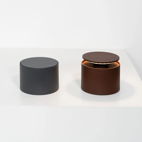 De Push-Up lamp is een draagbare en oplaadbare tafellamp die op batterijen werkt. Door het deksel omlaag te duwen, lift de diffuser omhoog en gaat het licht aan, door het deksel omlaag te duwen sluit de lamp en gaat het licht uit.