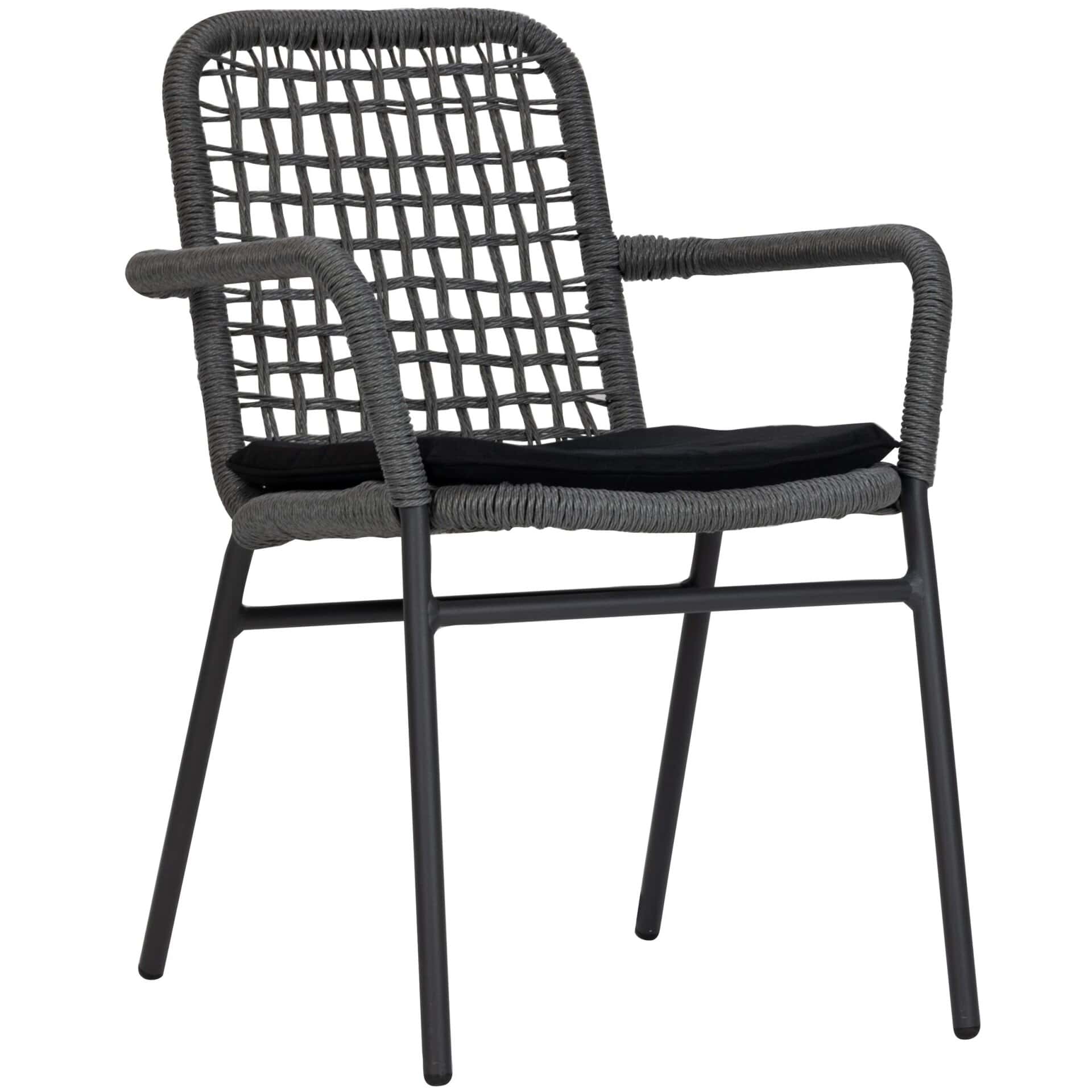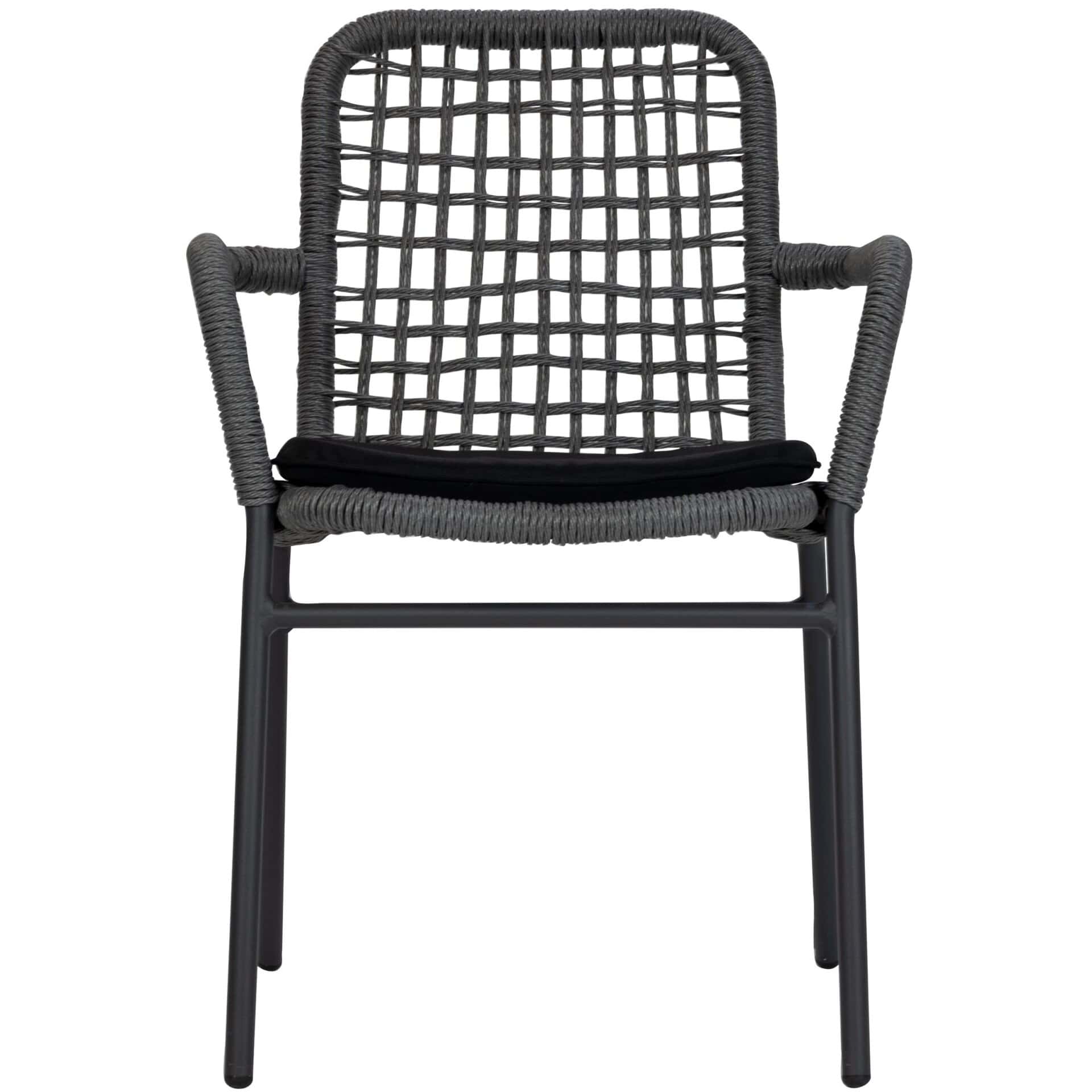 De Atrope heeft een stevig antracietkleurig aluminium frame en is bekleed met een robuust uv-bestendig touwgaas voor een moderne uitstraling. Voor het ultieme zitcomfort heeft de Atrope armleuningen.