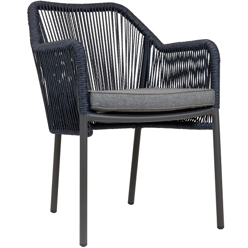 Laat gasten comfortabel genieten op jouw terras met de Baleric terrasstoel. De stoel is voorzien van een stevig antraciet aluminium frame en is bespannen met UV bestendig draadwerk van touw (rope wicker), wat zorgt voor een unieke uitstraling.