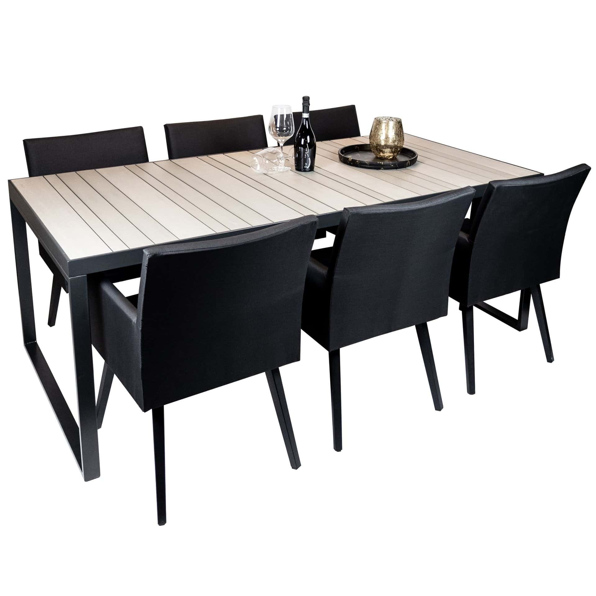 Het frame van de Muno Terrasstoel is gemaakt van aluminium. Een solide en stevige basis voor deze prachtige terrasstoel. De zitting van de Muno Terrasstoel is gemaakt van UV-bestendig textileen, ideaal dus voor buitengebruik.
