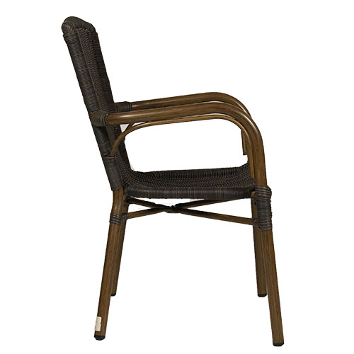 De Santa Fe stoel is uitgevoerd met een stabiel aluminium frame en bruin vlechtwerk. Daarnaast is deze stoel gemakkelijk stapelbaar, licht van gewicht en gemakkelijk in onderhoud en reiniging. Geheel horeca-proof!