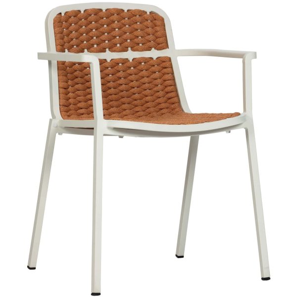 De Terrasstoel Tora Oker is een moderne, stijlvolle stoel voor op het terras. De Terrasstoel Tora heeft een aluminium frame en een roestbruine, oranje zitting. Een prachtige kleurencombinatie, wat de stoel een stijlvolle en futuristische look geeft. Een echte eyecatcher op jouw terras.