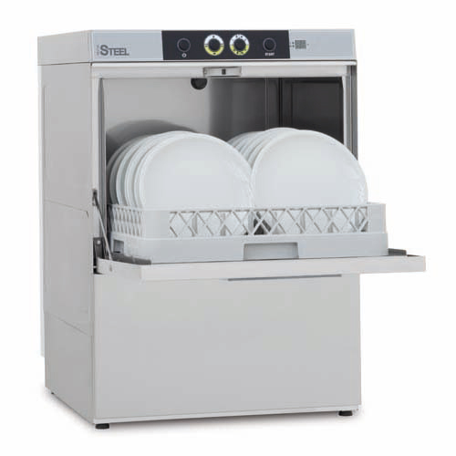 De voorlader is voorzien van een glansspoelmiddeldispenser en een grof- en vuilfilter. De doorvoerhoogte van de voorlader is 365 mm.