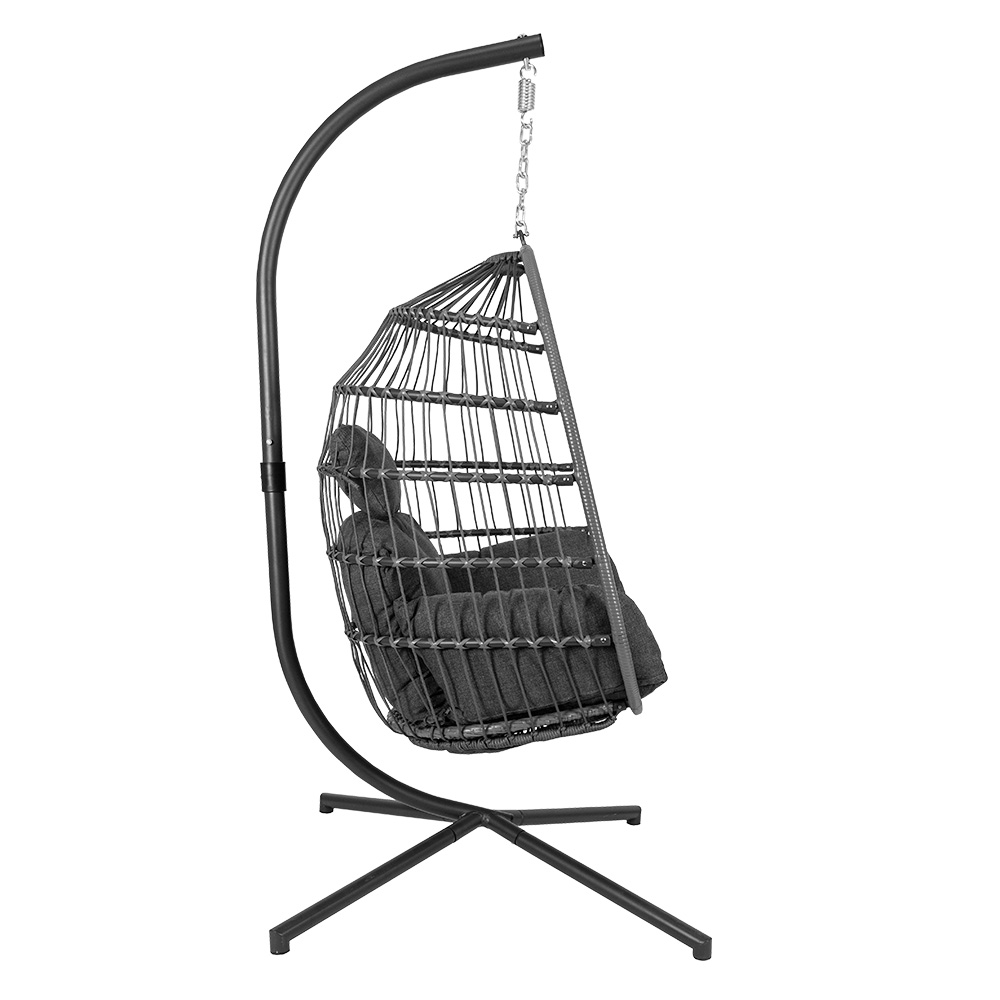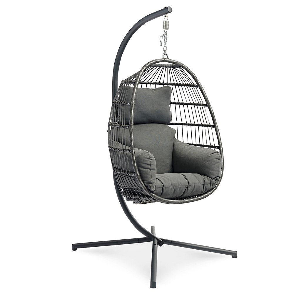 Met de Yoyo Hangstoel geniet je van ultiem comfort! Deze terrasstoel is een echte eyecatcher. Door het antraciet kleurige frame is de stoel gemakkelijk te combineren met diverse outdoor meubels. De Yoyo Eggchair is voorzien van grijze kussens en daarmee heerlijk comfortabel. De hangstoel is bovendien eenvoudig op te bergen. Perfect voor professioneel gebruik dus!